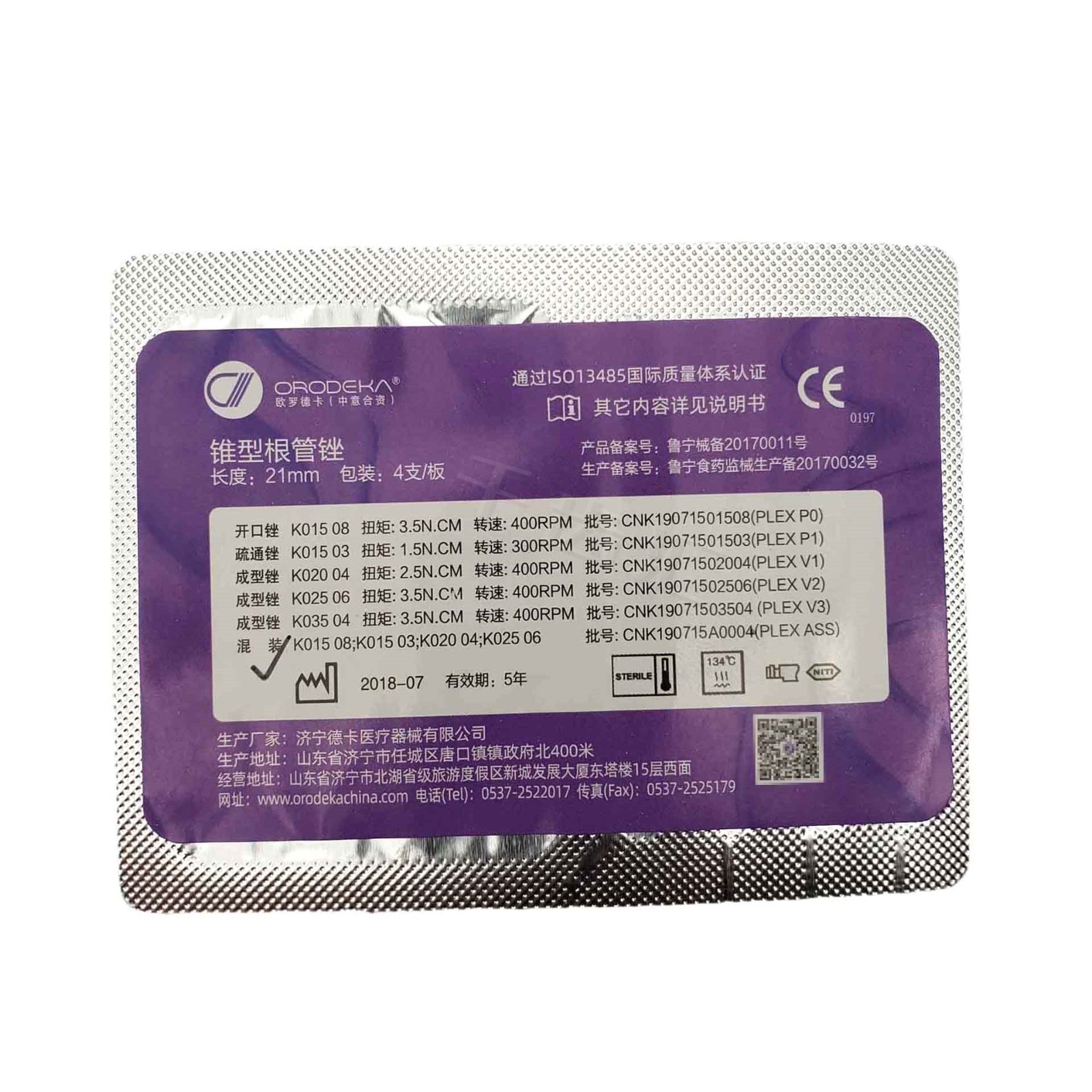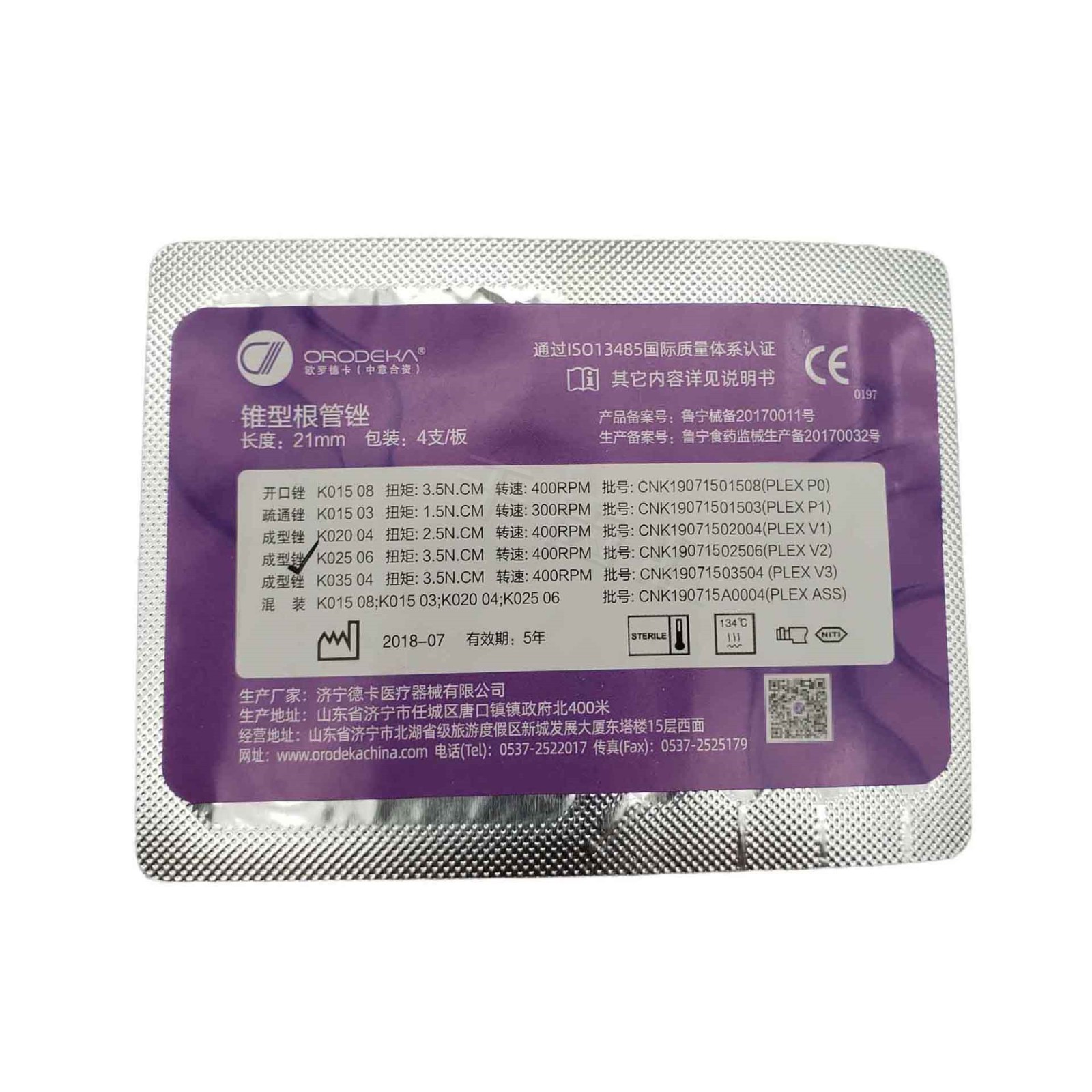 欧罗德卡 PLEX-2.0系列06锥度机用镍钛根管锉/机扩锉 4x1
