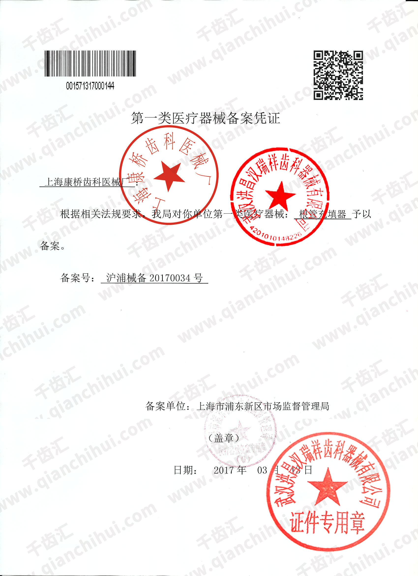 沪浦械备20170034号