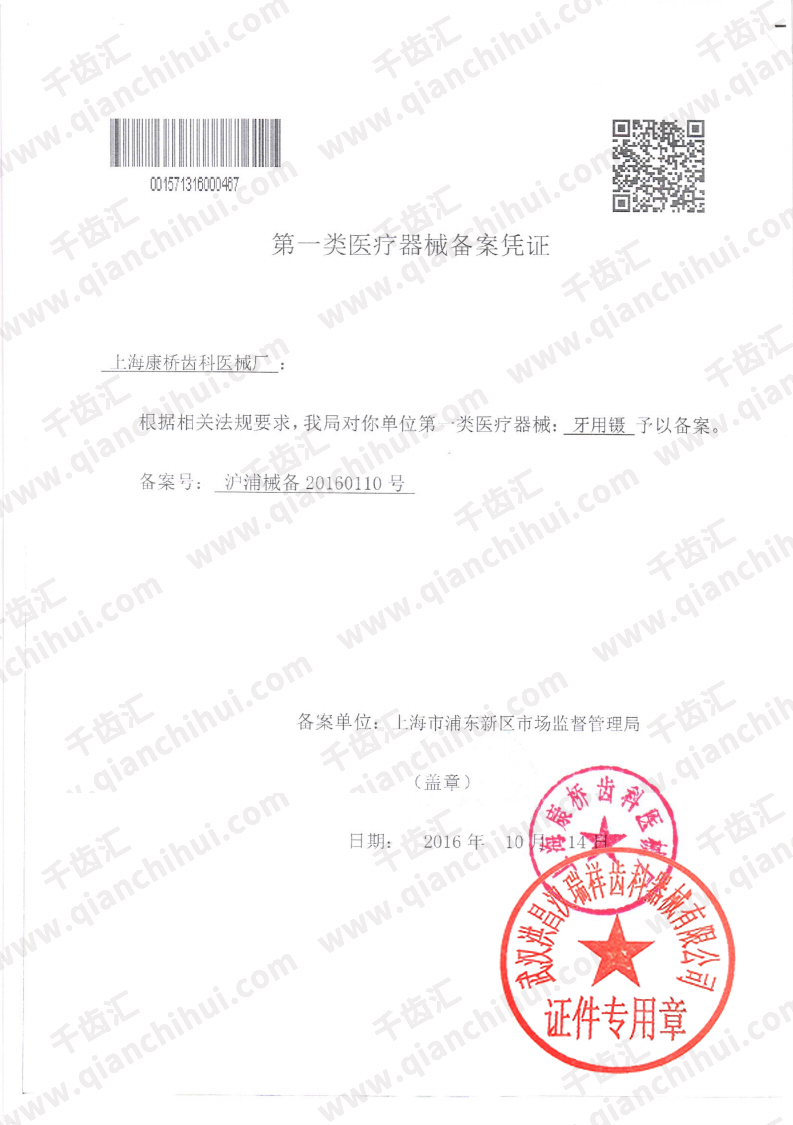 沪浦械备20160110号