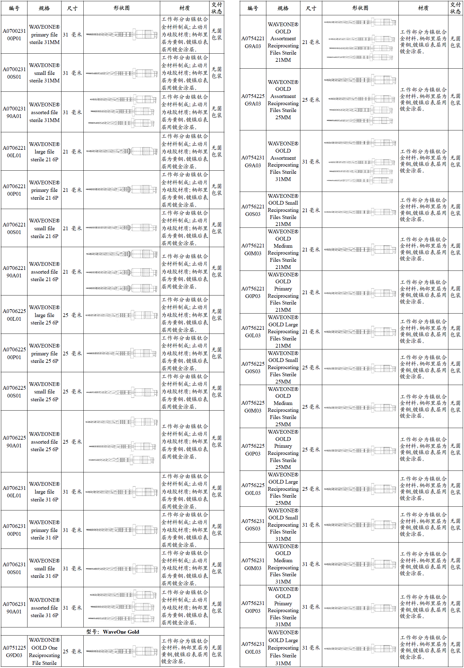 登士柏 Wave One Gold机用单支锉 (6X1)