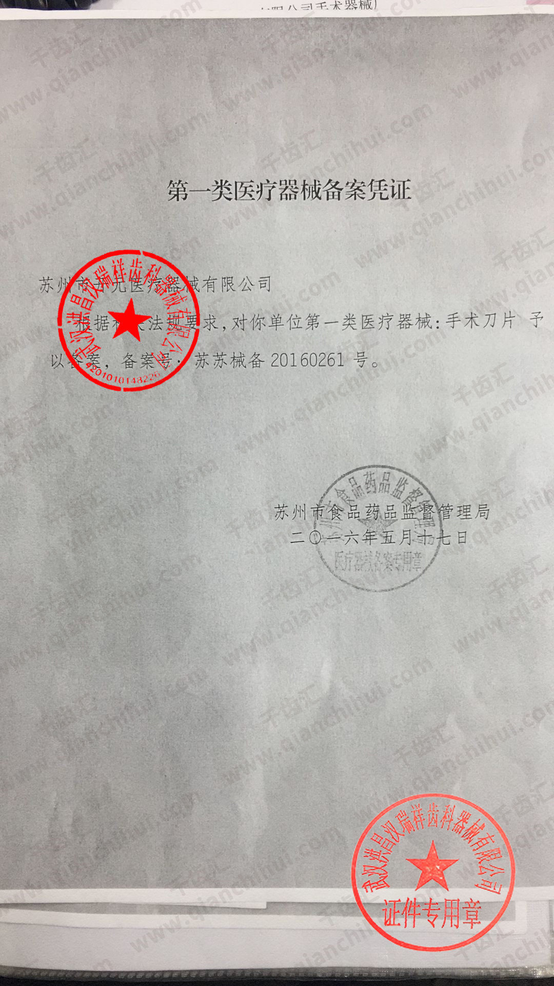 苏苏械备20160261号