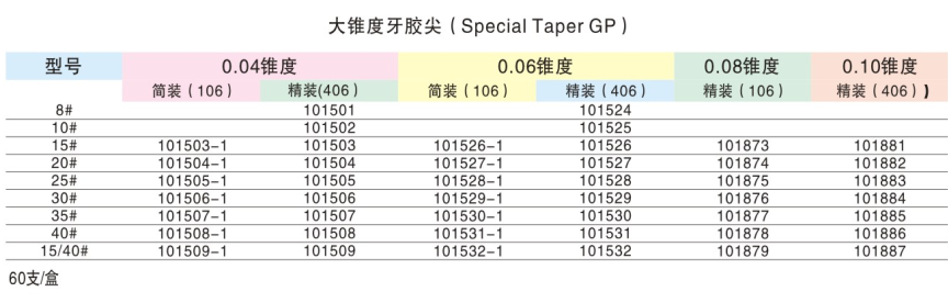 达雅鼎/柳苑 牙胶尖 (大锥度0.06)60支/盒
