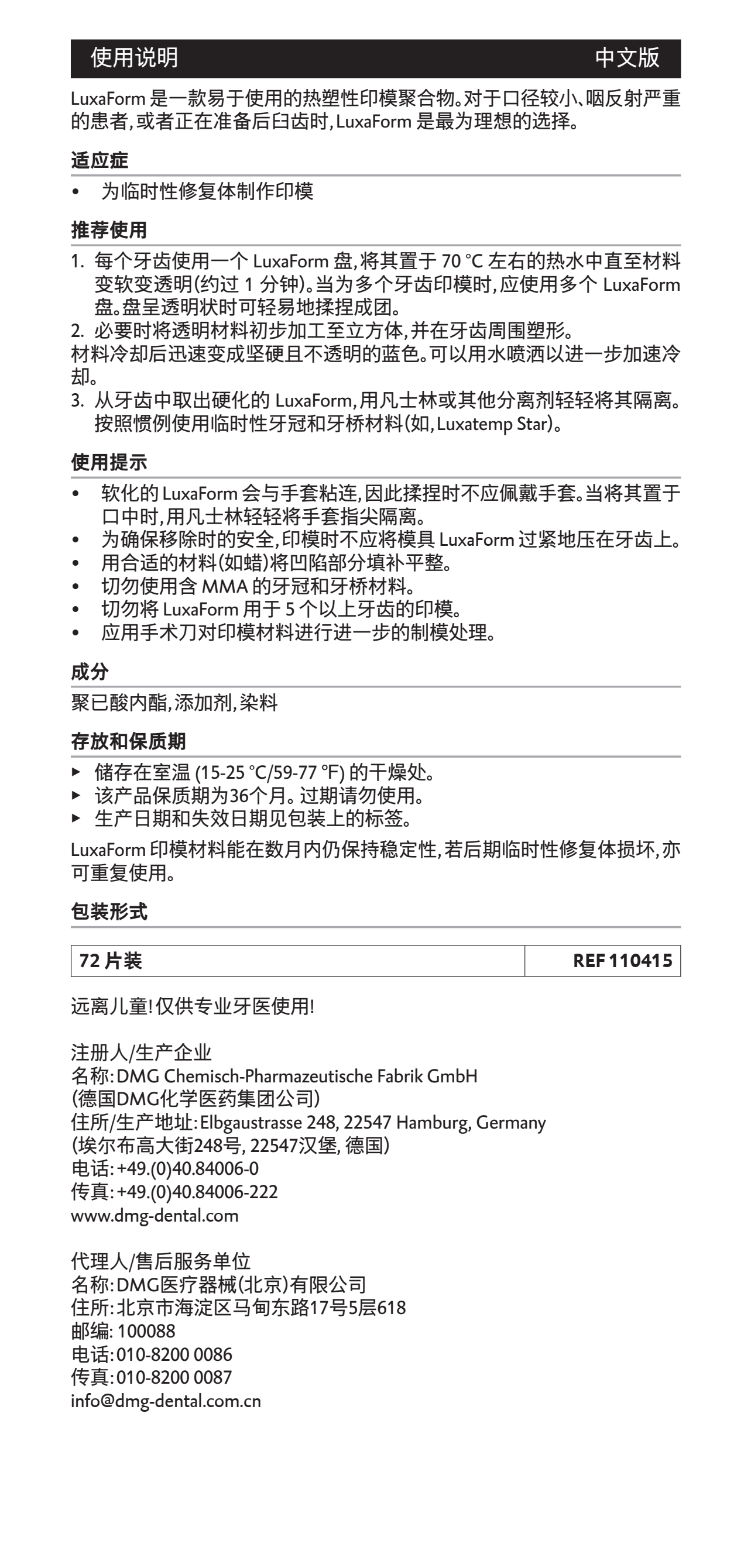 DMG 热塑印模片72片/盒