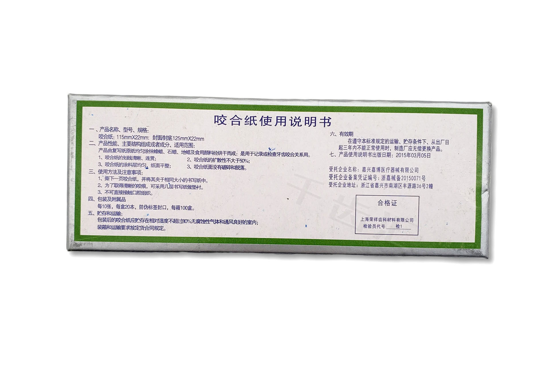 荣祥/尼康 咬合纸(蓝色)200张/盒(114μm厚)