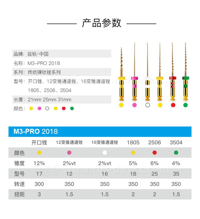 益锐/M3 M3-Pro 2018微创款 机用镍钛根管锉/机扩锉 6X1混装