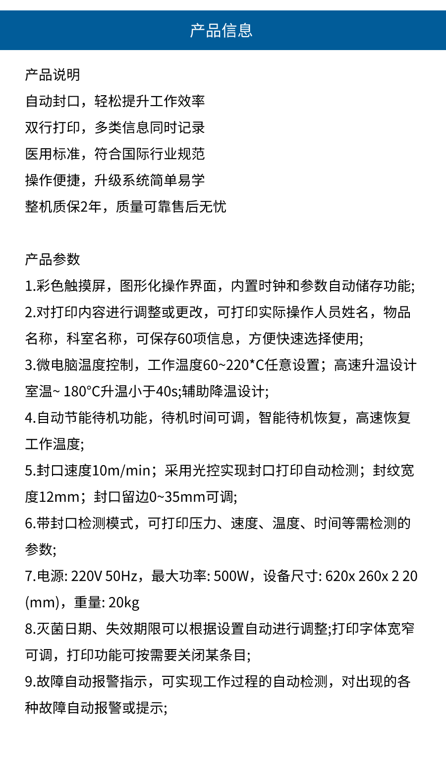 登拓 医用自动封口机/双行打印/双排打印(平板)