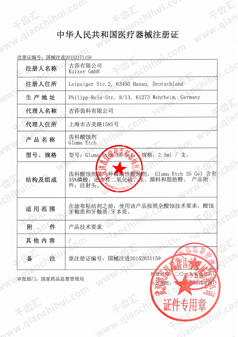 贺利氏 格鲁玛酸蚀剂(35%磷酸) 2.5ml/支