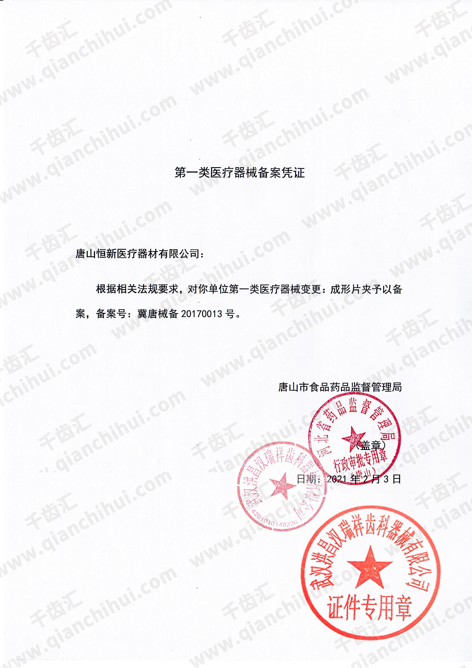 冀唐械备20170013号