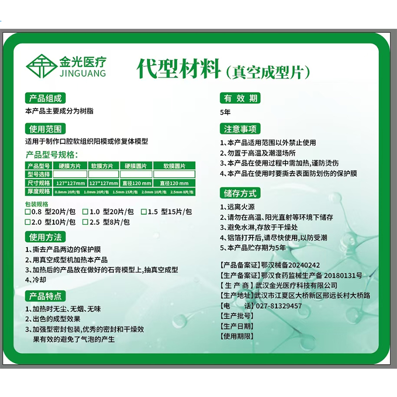 金光 真空成型片(硬膜片)/压膜片/口腔印模成型片/牙科膜片