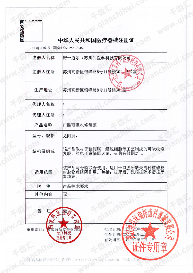 闻迈 口腔修复膜/骨膜/生物膜20x30