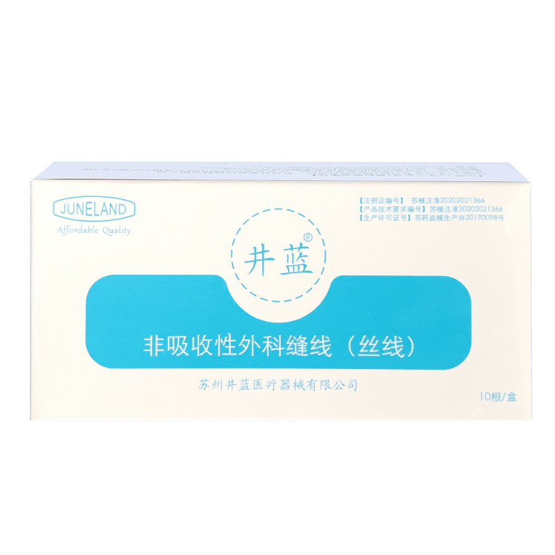 井蓝 非吸收性外科缝线/缝合针线/蚕丝线/真丝线 带针(10根/盒)