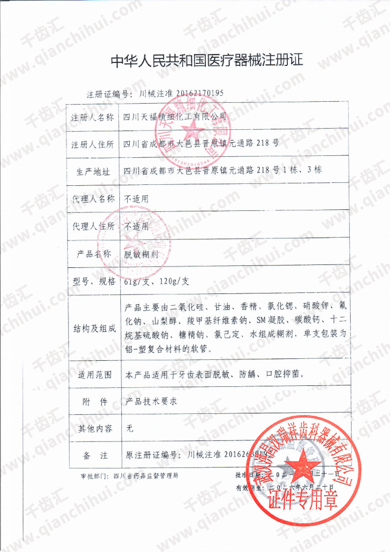 天福 脱敏糊剂120g/支