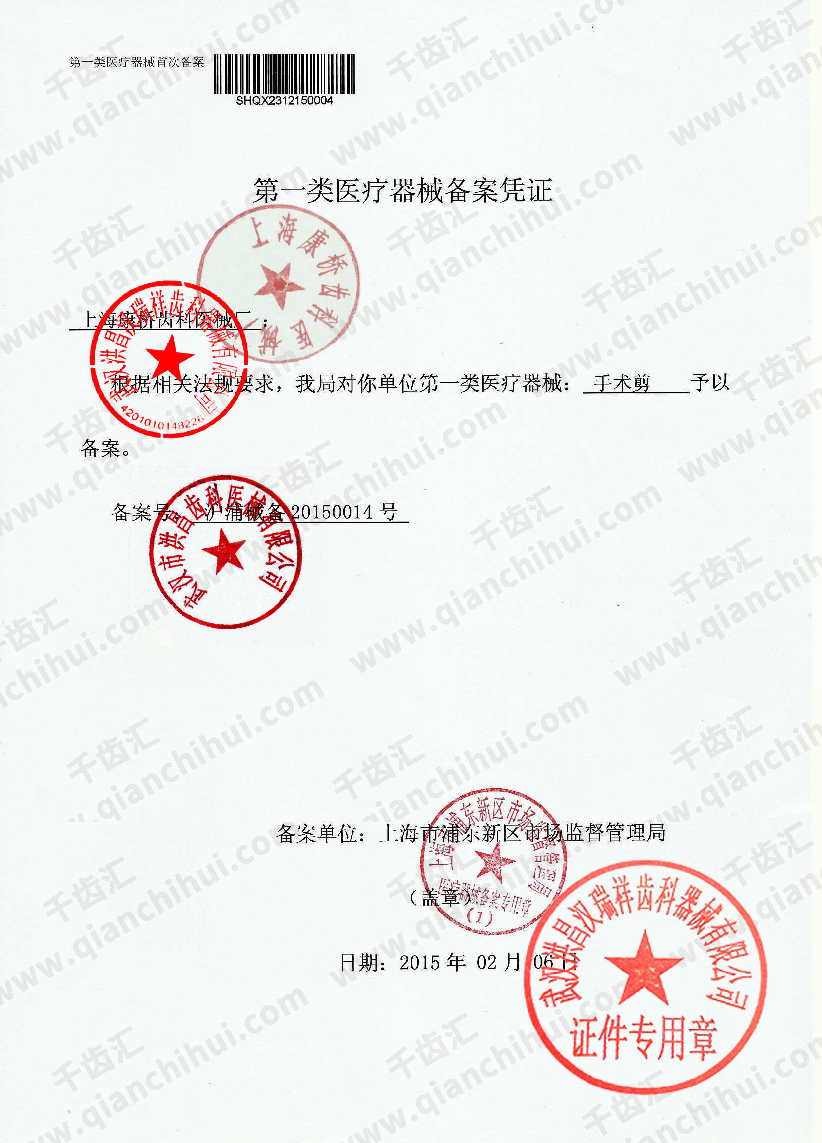 沪浦械备20150014号