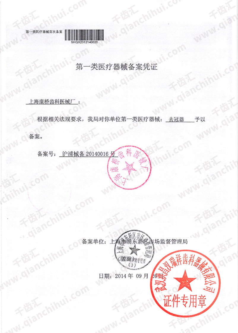 沪浦械备20140016号