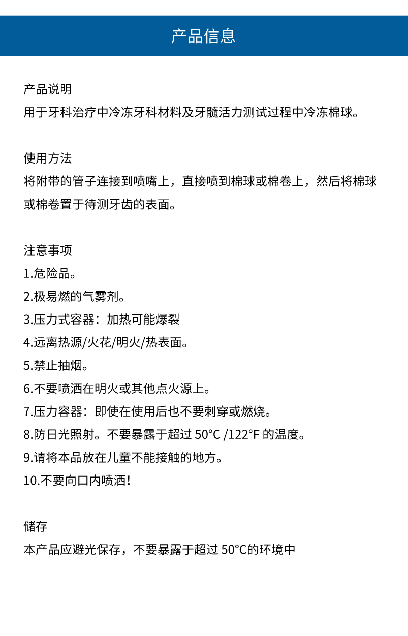 康特 Endo-Frost 冷冻喷雾剂/牙髓活力测试剂 200ml/瓶