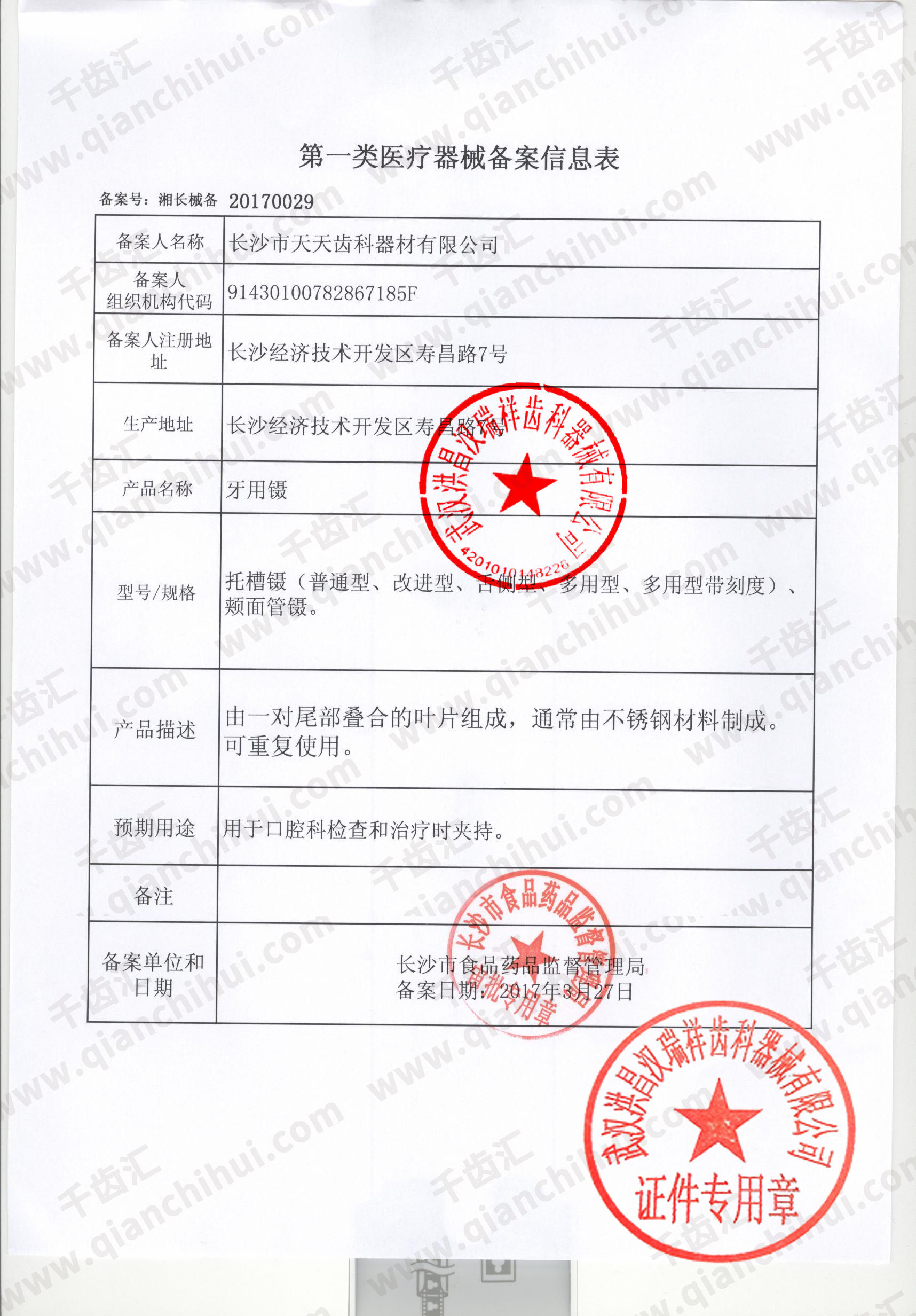 湘长械备20170029号