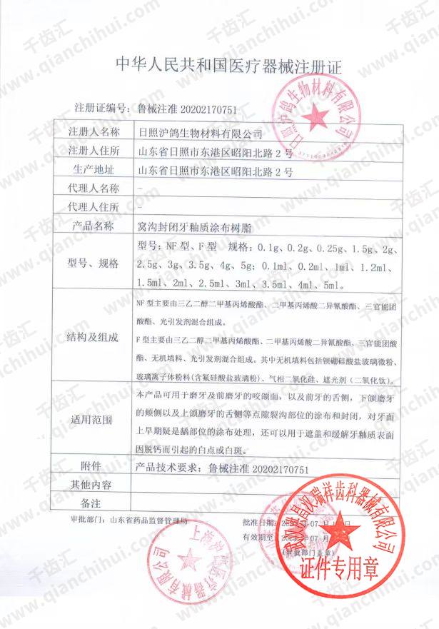 沪鸽 窝沟封闭牙釉质涂布树脂 /F型