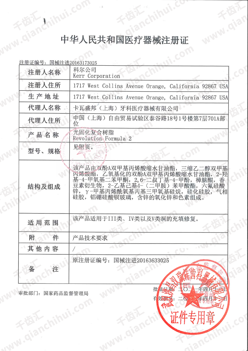 科尔/Kerr 光固化复合树脂/流动树脂/流体树脂Revolution Formula 2