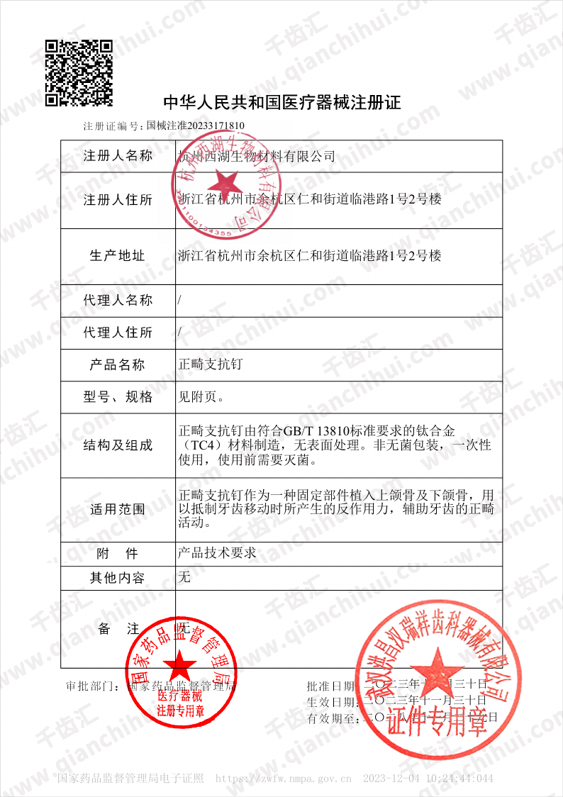 西湖巴尔 正畸支抗钉/钛合金支抗钉 XH Hero系列