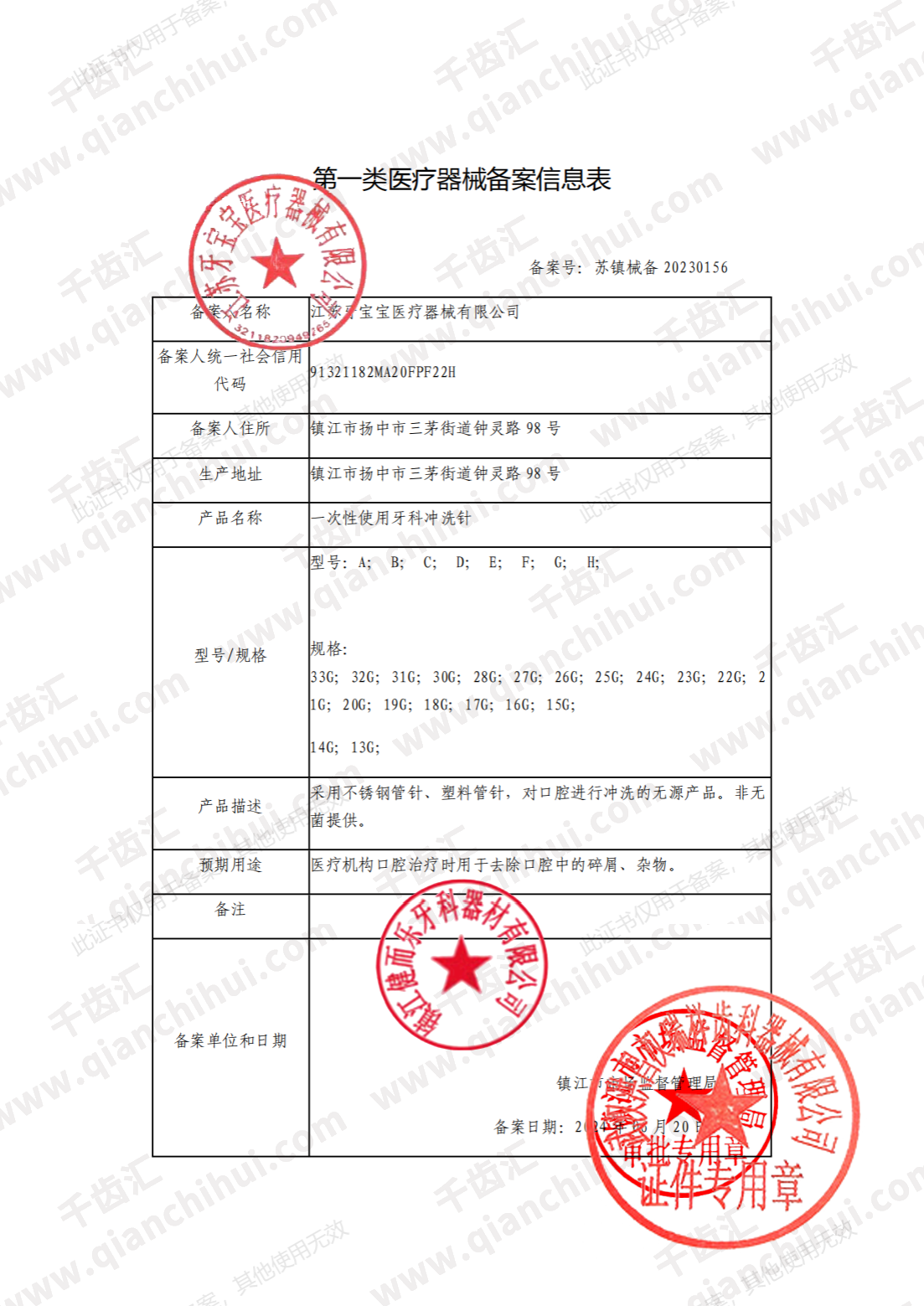 苏镇械备20230156