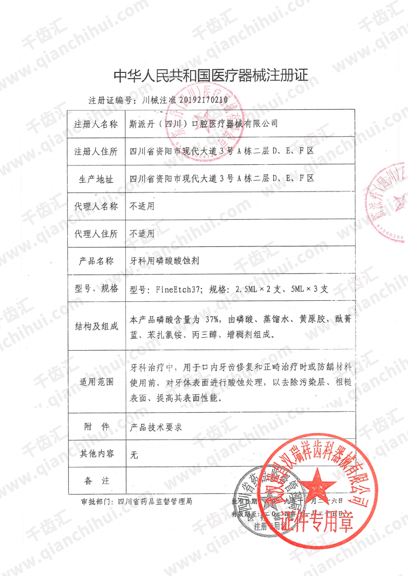韩国斯派丹 FineEtch37%磷酸酸蚀剂 3支/袋(5ml/支)