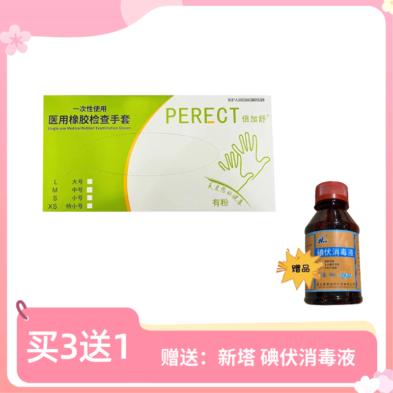 倍加舒 有粉光面/一次性使用医用橡胶检查手套抽盒装 100只/盒