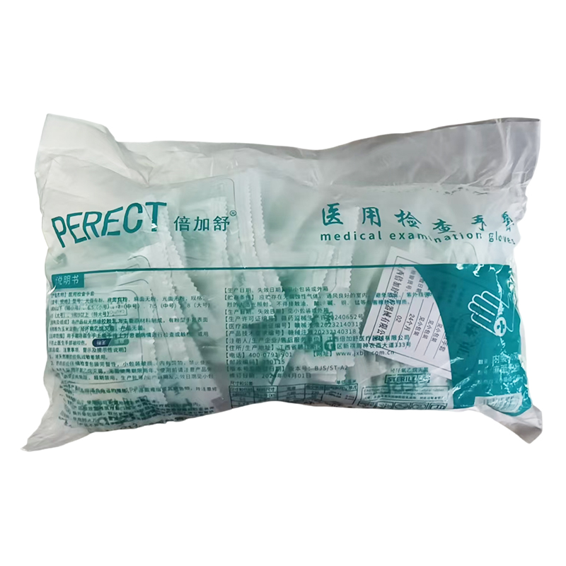 倍加舒 无粉麻面/独立包装一次性医用橡胶检查手套 (1副/包,50包/袋) 简装独包